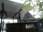 I guess they are kind of, sort of trying, just a little bit harder, to make the Greenway passable as more than a median strip, as the parks’ Conservancy put up some steal beams and a few wavy slabs of concrete to block the sun and educate folks on the parcel between Quincy Market and Columbus Park.